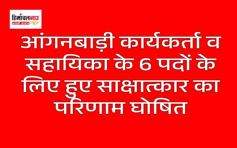 जोगिंदर नगर उपमंडल के बाल विकास परियोजना अधिकारी चौंतड़ा के तहत आंगनबाड़ी कार्यकर्ता और सहायिका के 6 पदों के लिए आयोजित साक्षात्कार का परिणाम घोषित कर दिया गया है। 2 जनवरी को एसडीएम की अध्यक्षता में गठित कमेटी ने इन साक्षात्कारों का आयोजन किया। परिणामस्वरूप 4 पदों पर पात्र उम्मीदवारों का चयन हुआ, जबकि 2 पद विभिन्न कारणों से रिक्त रह गए।
