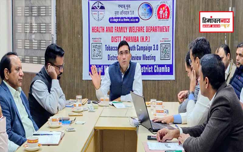 चंबा में आयोजित बैठक में उपायुक्त मुकेश रेपसवाल ने तंबाकू मुक्त युवा अभियान 3.0 की प्रगति की समीक्षा की। उन्होंने संबंधित विभागों को जागरूकता और प्रवर्तन गतिविधियों को और प्रभावी बनाने के निर्देश दिए।
