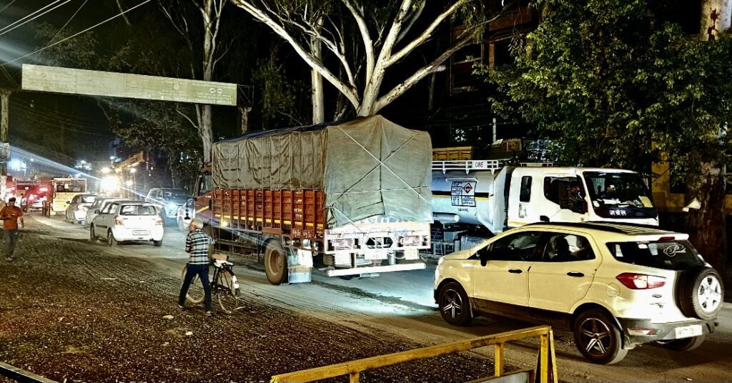 हैरानी की बात तो यह भी है कि अधिकतर ट्रकों की लोडिंग अनलोडिंग का कार्य भी सड़कों के किनारे ही चलता है।