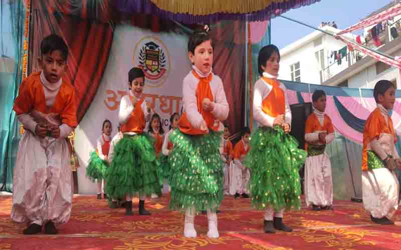 नर्सरी, एलकेजी और यूकेजी के बच्चों ने समूह नृत्य पेश करके खूब तालियां बटोरी। इसके अलावा पंजाबी नृत्य, पहाड़ी नाटी, हरियाणवी नृत्य भी प्रस्तुत किया।