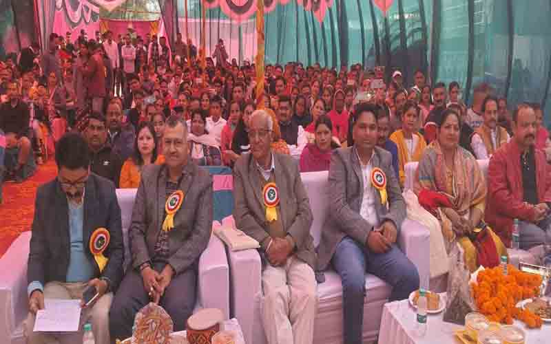 कार्यक्रम की शुरुआत मां सरस्वती की प्रतिमा पर माल्यार्पण और दीप प्रज्वलित कर की गई। इसके बाद प्रधानाचार्य राजेश सैनी ने वार्षिक प्रतिवेदन पेश किया।