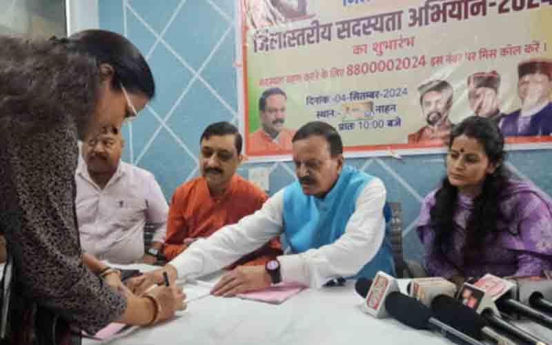 मीडिया से रूबरू होते हुए जिला भाजपा अध्यक्ष विनय गुप्ता ने बताया कि सिरमौर भाजपा ने पांचो मंडलों से सवा लाख सदस्य बनाए जाने का लक्ष्य रखा है। उन्होंने बताया कि सदस्यता अभियान के तहत प्रत्येक विधानसभा क्षेत्र को 25 -25हजार नए सदस्य बनाए जाने का लक्ष्य दिया गया है।