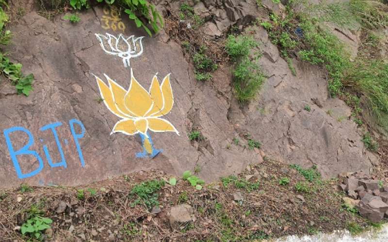 हिमाचल प्रदेश विधानसभा चुनावी रण को लेकर भाजपा ने फर्स्ट इंप्रेशन इज द लास्ट इंप्रेशन का प्रभाव डालना शुरू कर दिया है। हालांकि, अभी विधानसभा चुनावों को लेकर 3 महीने का समय बाकी बचा है। बावजूद इसके वॉल राइटिंग का काम शुरू हो चुका है। राष्ट्रीय राजमार्ग-907 ए नाहन से कुमारहट्टी सड़क के पहाड़ी की ओर जगह-जगह कमल का फूल बनाया गया है। यही नहीं भाजपा 2022 मिशन रिपीट का नारा भी दिया गया है।