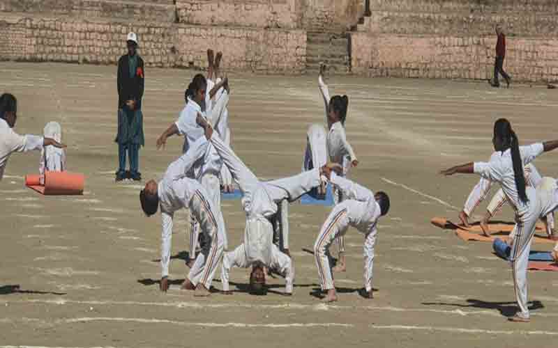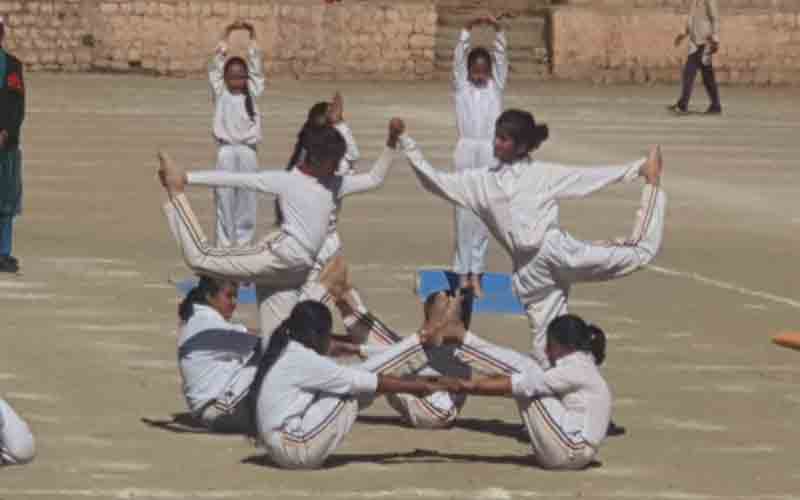 वहीं योग और कराटे प्रदर्शन ने सभी को चकित किया। इसके अलावा एथलेटिक्स, हाई जंप और वाक्य प्रतियोगिता आयोजित की गई।
