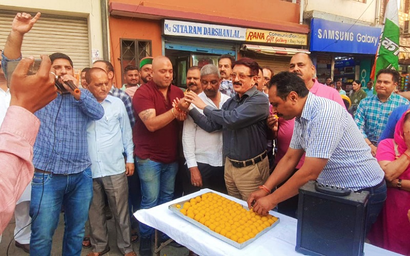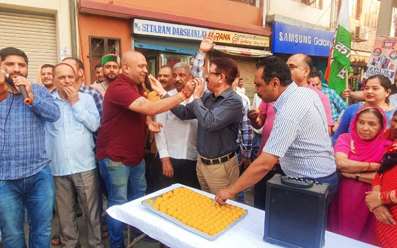 कर्नाटक में बंपर जीत पर सिरमौर कांग्रेस में जश्न का माहौल, बजे ढोल, बांटी मिठाईयां