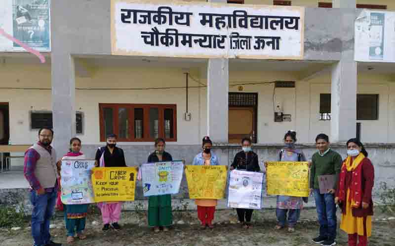 चिंतपूर्णी विधानसभा क्षेत्र एवं उप तहसील जोल के अंतर्गत आने वाले राजकीय महाविद्यालय चौकीमन्यार में साइबर क्राइम जागरूकता अभियान के अंतर्गत आज वीरवार को पोस्टर मेकिंग प्रतियोगिता का आयोजन किया गया। जिसमें महाविद्यालय के छात्र छात्राओं ने बढ़ चढ़कर भाग लिया। महाविद्यालय के छात्र-छात्राओं द्वारा पोस्टर मेकिंग के माध्यम से साइबर क्राइम के विभिन्न पहलुओं को दर्शाया गया।