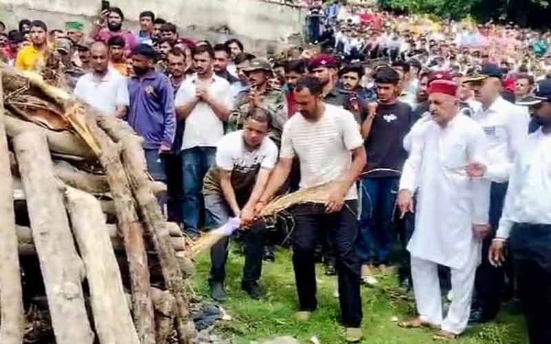 नाहनः आपरेशन अलर्ट के दौरान अरुणाचल में जिला सिरमौर के शहीद आशीष चौहान की पार्थिव देह वीरवार दोपहर बाद पंचतत्व में विलीन हो गई। गुरू की नगरी पांवटा साहिब में यमुना नदी किनारे उनका पूरे सैन्य सम्मान के साथ अंतिम संस्कार किया गया। जहां उनके बड़े भाई राहुल और जुड़वां भाई रोहित ने उन्हें मुखाग्नि दी। उनकी अंतिम यात्रा में हजारों लोग शामिल हुए।