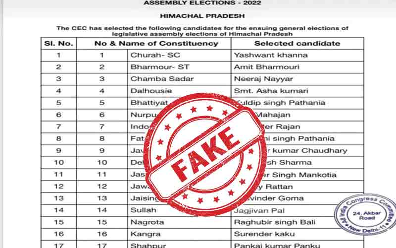 सोशल मीडिया में कांग्रेस प्रत्याशियों को लेकर जारी सूची पूरी तरह फर्जी व झूठी- किमटा September 30, 2022 PRIYANKA THAKUR