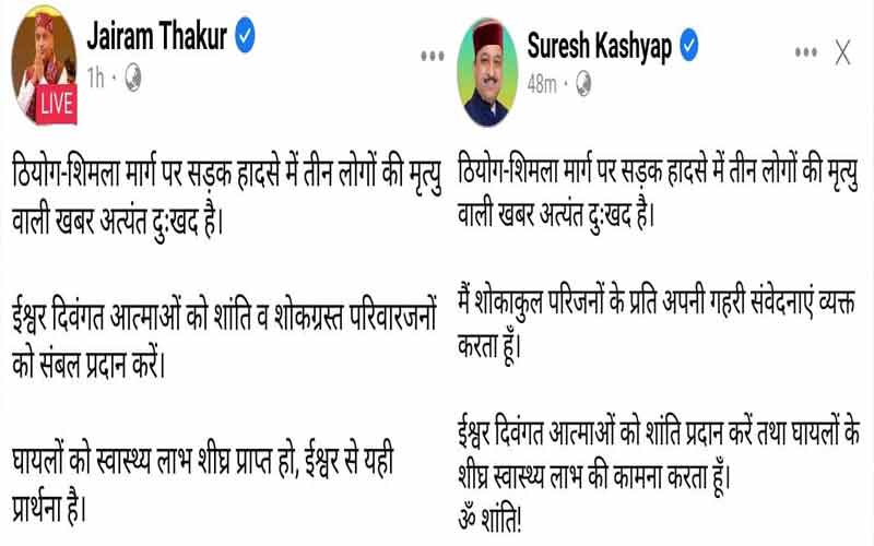 शिमला में पेश आए दर्दनाक सड़क हादसे पर सीएम जयराम ठाकुर और सांसद सुरेश कश्यप ने जताया शोक, बोले… October 1, 2022 PRIYANKA THAKUR