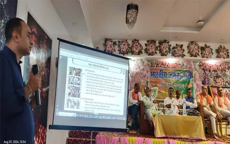 भाजपा सदस्यता अभियान की तैयारियों को लेकर थाना कलां में आयोजित कुटलैहड मंडल की कार्यशाला। August 29, 2024 PARUL