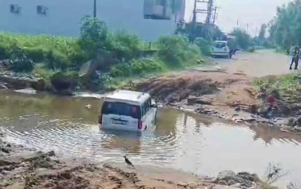पानी में फंसी विधायक की गाड़ी, दलदल में पैदल उतर कर पार किया खाला