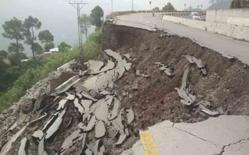 फोरलेन सड़क निर्माण के तहत डंगे धंसने से मकानों को नुकसान
