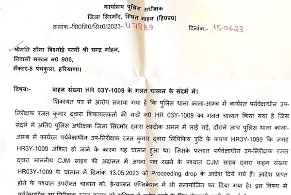 हरियाणा के पूर्व डिप्टी सीएम का चालान काटना सिरमौर पुलिस को पड़ा भारी