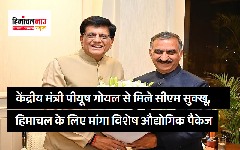 हिमाचल प्रदेश के मुख्यमंत्री सुखविंद्र सिंह सुक्खू ने केंद्रीय वाणिज्य एवं उद्योग मंत्री पीयूष गोयल से नई दिल्ली में मुलाकात की और प्रदेश के लिए विशेष औद्योगिक पैकेज की मांग की। उन्होंने राज्य के औद्योगिक विकास और निर्यात को बढ़ावा देने के लिए केंद्र से सहयोग की अपील की।