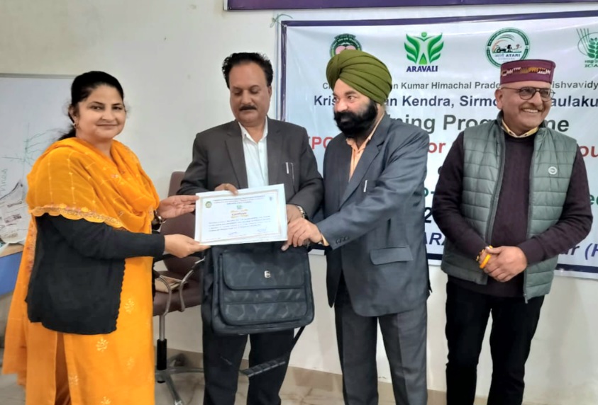 कृषि विज्ञान केंद्र (के.वी.के.), सिरमौर की पहल पर हिमाचल के किसानों को बड़ी सौगात मिली है। केंद्र ने कृषक उत्पादक संगठनों (एफ.पी.ओ.) से जुड़े 31 किसानों के लिए 15 दिवसीय आवासीय प्रशिक्षण पूरा किया है। यह प्रशिक्षण 17 नवंबर से शुरू होकर 1 दिसंबर को संपन्न हुआ।
