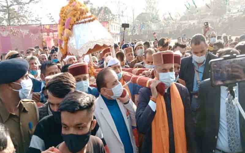 हिमाचल प्रदेश के मुख्यमंत्री जयराम ठाकुर ने भगवान परशुराम की पालकी को कंधा देकर अंतरराष्ट्रीय रेणुका मेले का विधिवत शुभारंभ किया। मुख्यमंत्री का काफिला ददाहू खेल मैदान पहुंचा, जहां उन्होंने विधिवत पूजा-अर्चना के बाद भगवान परशुराम की पालकी को कंधा देकर विशाल शोभायात्रा का शुभारंभ किया।