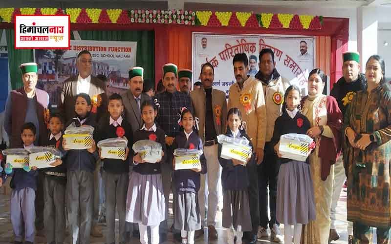 धर्मशाला : शाहपुर के विधायक और उपमुख्य सचेतक केवल पठानिया ने राजकीय वरिष्ठ माध्यमिक पाठशाला कल्याड़ा के वार्षिक उत्सव के दौरान 79 स्कूली बच्चों को नि:शुल्क ट्रैक सूट और जूते वितरित किए। इनमें 40 छात्र और 39 छात्राएं शामिल थीं। शाहपुर वेलफेयर सोसाइटी और कल्याड़ा कांग्रेस कमेटी के सौजन्य से यह सहायता प्रदान की गई। ट्रैक सूट और जूते पाकर बच्चों के चेहरों पर खुशी झलक रही थी।
