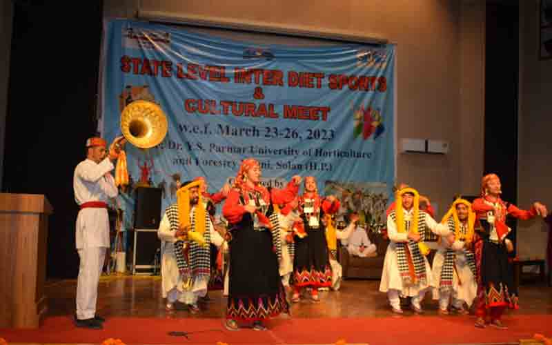 जिला सोलन के डाॅ. वाई.एस. परमार बागवानी एवं वानिकी विश्वविद्यालय नौणी में आयोजित चार दिवसीय राज्य स्तरीय इंटर-डाईट खेल एवं सांस्कृतिक प्रतियोगिता के समापन समारोह आयोजित हुआ। इस समारोह में स्वास्थ्य एवं परिवार कल्याण, सामाजिक न्याय एवं अधिकारिता तथा श्रम एवं रोज़गार मंत्री डाॅ. कर्नल धनी राम शांडिल ने बतौर मुख्यातिथि शिरकत की।
