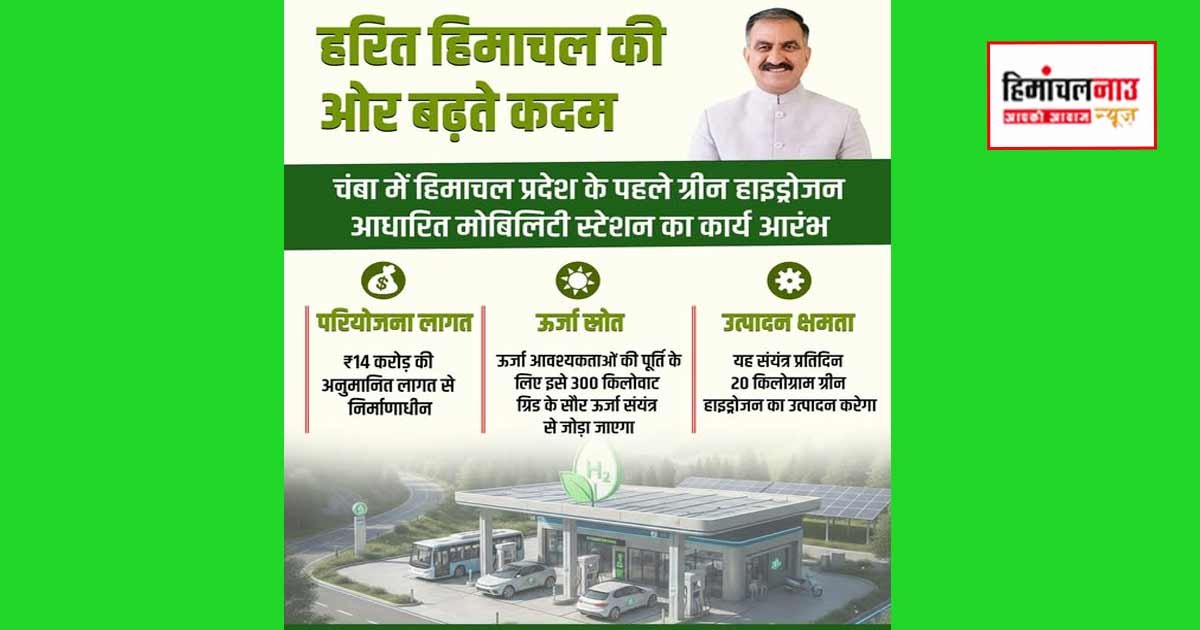 चंबा में हिमाचल प्रदेश का पहला ग्रीन हाइड्रोजन आधारित मोबिलिटी स्टेशन स्थापित किया जा रहा है। यह परियोजना स्वच्छ ऊर्जा और आत्मनिर्भर प्रदेश की दिशा में महत्वपूर्ण कदम मानी जा रही है।