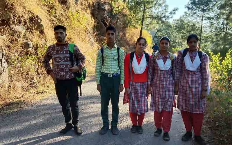 स्कूली छात्र-छात्राएं 4 किलोमीटर पैदल चलकर पहुंचे जमटा स्कूल