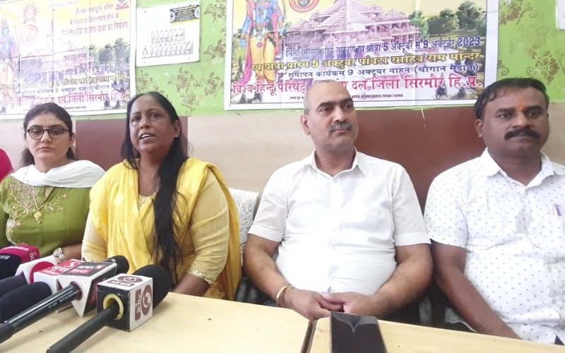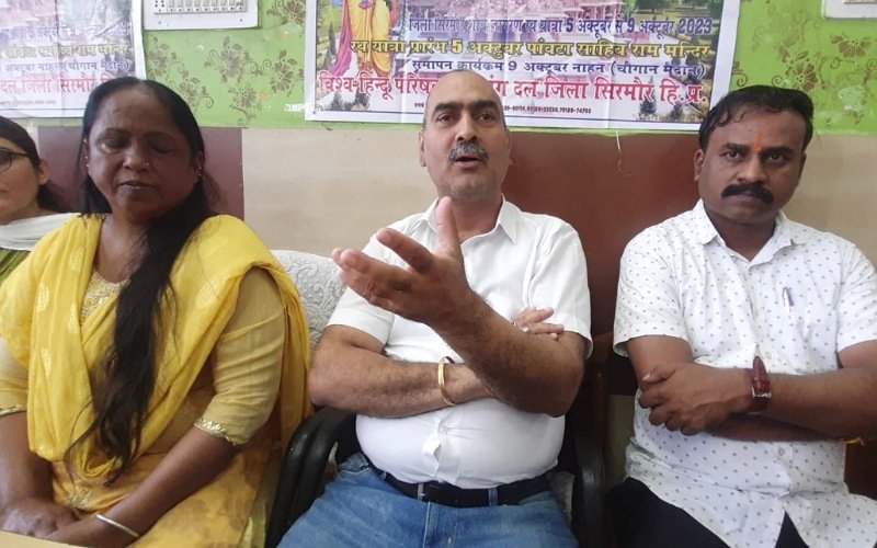 उन्होंने बताया कि जिला सिरमौर विश्व हिंदू परिषद और बजरंग दल के तत्वाधान में शौर्य जागरण यात्रा यानी हिंदू संगम का आयोजन 5 अक्टूबर से 9 अक्टूबर तक किया जा रहा है। उन्होंने बताया कि इसका शुभारंभ 5 अक्टूबर को महामंडलेश्वर श्री पंच 10 नाम जूना अखाड़ा के श्री श्री 1008 परमहंस महामंडलेश्वर स्वामी दयानंद भारती जी के द्वारा पांवटा साहिब से किया गया था।