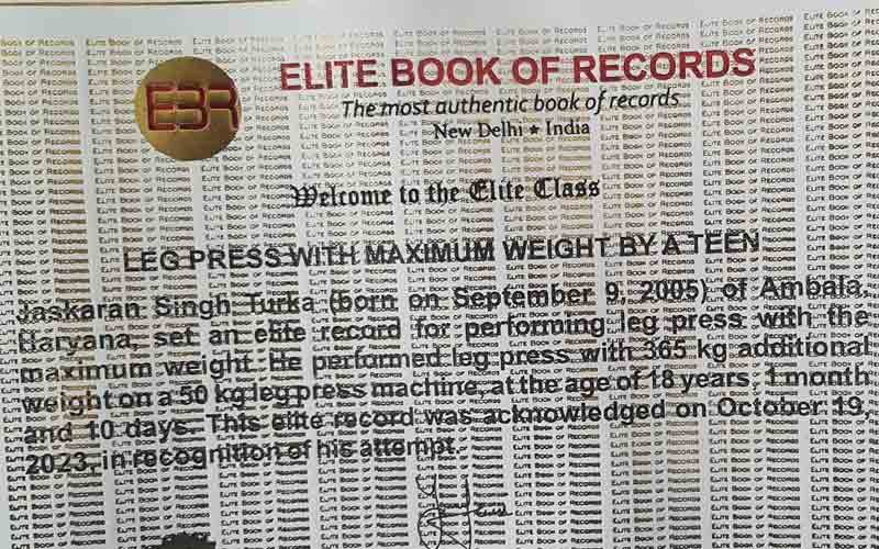टीनएजर युवक को ट्रेंड कर लेग प्रेस में तोड़ा रिकॉर्ड, एलाइट बुक में दर्ज हुआ नाम
