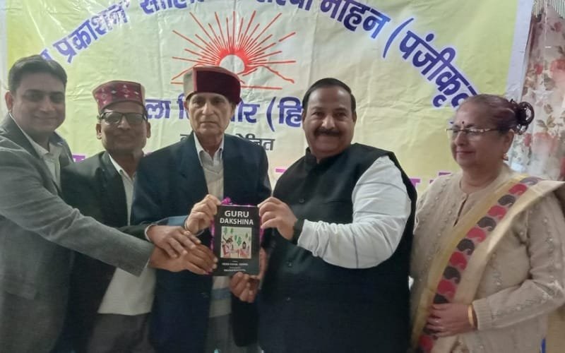 प्रदेश के वरिष्ठ साहित्यकार एवं नाहन निवासी दीन दयाल वर्मा द्वारा रचित काव्य नाटक गुरू दक्षिणा के अंग्रेजी संस्करण का लोकार्पण समारोह रविवार को नाहन में हुआ। कार्यक्रम में वरिष्ठ साहित्यकार दीप चंद कौशल ने मुख्य अतिथि के रूप में शिरकत की। उन्होंने लेखक दीन दयाल वर्मा द्वारा रचित और गोल्ड मेडलिस्ट प्रो. डा. राजन कौशल द्वारा अनुवादित गुरू दक्षिणा का लोकार्पण कर उसकी पहली प्रति लेखक को भेंट की।