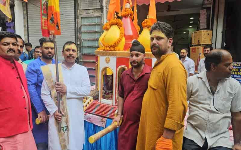 शहर के 9 प्रमुख मंदिरों के पालनों के साथ निकली भव्य शोभायात्रा, किश्ती में तैराया गया भगवान नरसिंह का पालना