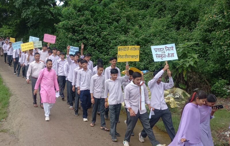 संस्कृत की गूंज के साथ शहर में निकली शोभायात्रा
