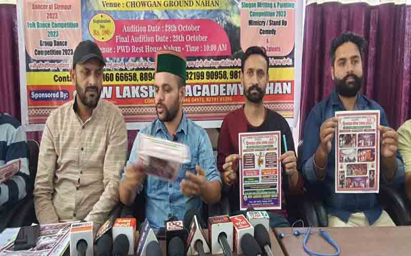 बुधवार को सिरमौर प्रेस क्लब भवन नाहन में डायनामिक युवा मंडल ने पत्रकार वार्ता का आयोजन किया। जिसमें हिमाचल लोक उत्सव 2023 को लेकर जानकारी साझा की गई। डायनामिक युवा मंडल के अध्यक्ष ओपी ठाकुर ने बताया कि हिमाचल लोक उत्सव में भाग लेने से पहले प्रतिभागियों को 28 नवंबर को पीडब्ल्यूडी रेस्ट हॉउस में ऑडिशन देने होंगे और अंतिम ऑडिशन 29 नवंबर को होंगे तथा ऑडिशन फीस 100 रुपए होंगी।