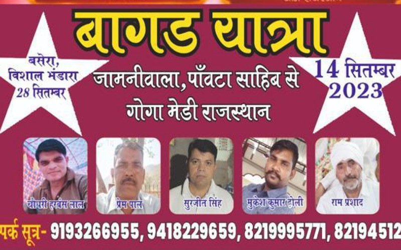 राजकुमार भक्त ने सभी क्षेत्रवासियों को अधिक से अधिक संख्या में इस निशान यात्रा व बागड़ यात्रा में शामिल होने का आग्रह किया है। बता दें बागड़ राजस्थान में बड़ी मान्यता वाला मंदिर है।