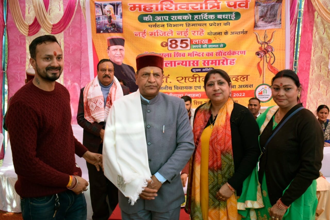 पौड़ीवाला स्थित ऐतिहासिक स्वयंभू शिवालय परिसर का 85 लाख रुपये की लागत से सौंदर्यकरण कार्य का मंगलवार को महाशिवरात्रि के अवसर पर विधायक एवं पूर्व विधानसभा अध्यक्ष डा. राजीव बिन्दल ने शिलान्यास किया। उन्होंने इस अवसर पर आमवाला-खजूरना सड़क पर दो पुलों का शिलान्यास भी किया। डा. राजीव बिन्दल ने इस अवसर पर अपने सम्बोधन में कहा कि शिवरात्रि के पावन अवसर पर नाहन जनपद में शिवरात्रि की धूम है और शिवालयों में भोले बाबा के दर्शन के लिए लोग सुबह से ही कतारबद्ध खड़ें हैं।