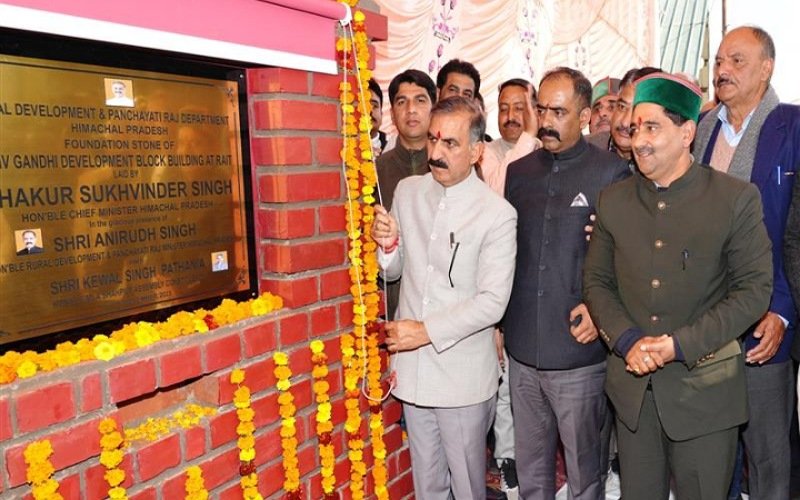 मुख्यमंत्री ठाकुर सुखविंदर सिंह सुक्खू ने आज कांगड़ा जिला के शाहपुर विधानसभा क्षेत्र के अंतर्गत रैत में 5.36 करोड़ रुपए की लागत से निर्मित होने वाले खंड विकास अधिकारी के कार्यालय भवन का शिलान्यास किया। इस अवसर पर एक विशाल जनसभा को संबोधित करते हुए मुख्यमंत्री ने कहा कि वर्तमान सरकार ने अपने एक वर्ष के कार्यकाल में तीन गारंटियां पूरी की हैं, जबकि पिछली भाजपा सरकार ने अपने पांच साल के कार्यकाल मेें केवल मात्र प्रदेश की जनता को ठगने का ही कार्य किया।