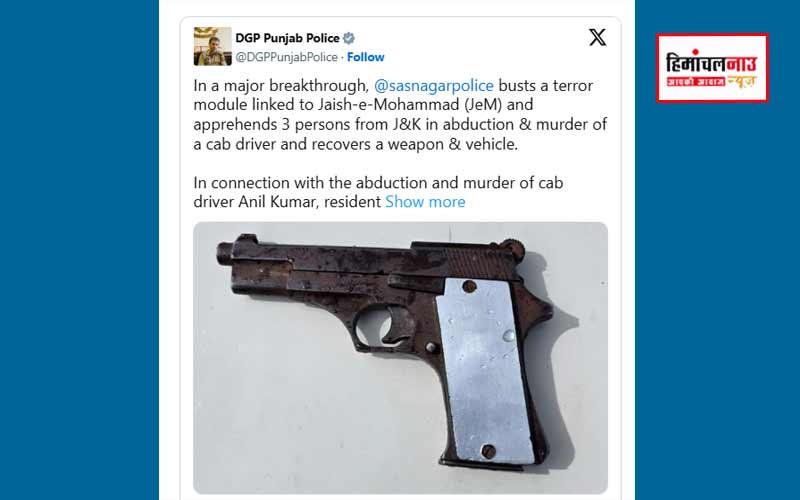 सास नगर (मोहाली) पुलिस ने बड़ी कार्रवाई करते हुए जैश-ए-मोहम्मद (JeM) से जुड़े एक आतंकी मॉड्यूल का भंडाफोड़ किया है। पुलिस ने जम्मू-कश्मीर से तीन आरोपियों को गिरफ्तार किया है, जो हिमाचल प्रदेश से संबंध रखने वाले नयागांव निवासी टैक्सी चालक अनिल कुमार के अपहरण और हत्या में शामिल पाए गए हैं। इस दौरान पुलिस ने आरोपियों से घटना में इस्तेमाल एक हथियार और वाहन भी बरामद किया है।