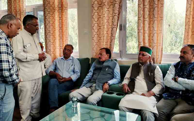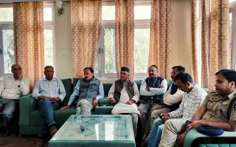 उद्योग, संसदीय मामले एवं आयुष मंत्री हर्षवर्धन चौहान ने पच्छाद विधानसभा प्रवास के दौरान सोमवार को लोक निर्माण विभाग विश्राम गृह राजगढ़ में क्षेत्र के लोगों की समस्याएं सुनी। इस दौरान राजगढ़ क्षेत्र के विभिन्न गावों से आए लोगों ने अपनी निजी समस्याएं रखी। वहीं विभिन्न पंचायतों से आए जन-प्रतिनिधियों ने मंत्री से मिलकर उन्हें अपने-अपने पंचायतों से संबंधित समस्याओं से अवगत करवाया।