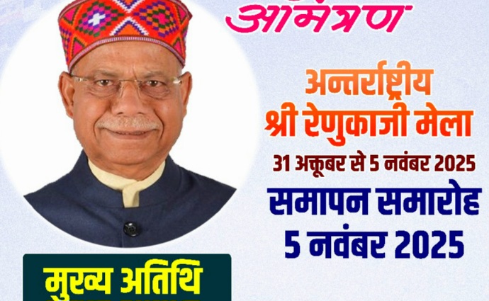 जिला सिरमौर के प्रसिद्ध अन्तर्राष्ट्रीय श्री रेणुका जी मेला के समापन अवसर पर 05 नवम्बर को राज्यपाल हिमाचल प्रदेश श्री शिव प्रताप शुक्ल मुख्य अतिथि होगें।