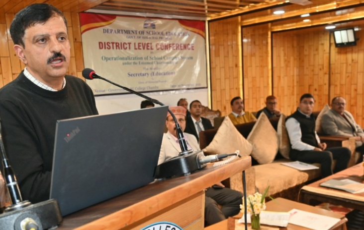 सचिव मुख्यमंत्री, शिक्षा, ऊर्जा, सूचना एवं जनसंपर्क, भाषा एवं संस्कृति राकेश कंवर ने आज राजकीय स्नातकोत्तर महाविद्यालय चंबा में स्कूल कॉम्प्लेक्स प्रणाली के प्रभावी क्रियान्वयन को लेकर आयोजित जिला स्तरीय सम्मेलन की अध्यक्षता की।