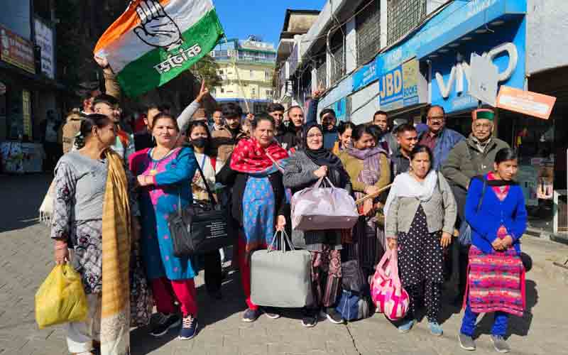 प्रदेश कि सुखविंदर सिंह सुक्खू सरकार के 1 वर्ष के कार्यकाल के जश्न में सिरमौर कांग्रेस का काफिला करीब सुबह 11:00 बजे रवाना हो गया है। कांग्रेसी कार्यकर्ता दलबल और जोश के साथ हाथों में 2 दिन के लिए अपने सामान से भरे बैग लेकर धर्मशाला के लिए रवाना हुए हैं। हालांकि सिरमौर से 16 बसें और सैंकड़ों छोटे वाहन सैंकड़ों कार्यकर्ताओं के साथ निकले। मगर नाहन से अंतिम बस करीब 11:30 बजे कांग्रेस भवन से रवाना हुई।