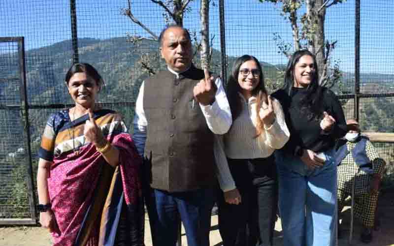 हिमाचल प्रदेश के मुख्यमंत्री जयराम ठाकुर ने परिवार सहित मतदान केंद्र में पहुंचकर मताधिकार का प्रयोग किया। बता दे कि सीएम जयराम ठाकुर मंडी संसदीय क्षेत्र के उपचुनाव में सराज हलके की मुरहाग पंचायत के भराड़ी बूथ में पत्नी डा. साधना ठाकुर व दोनों बेटियां के साथ पहुंचे और मतदान किया।