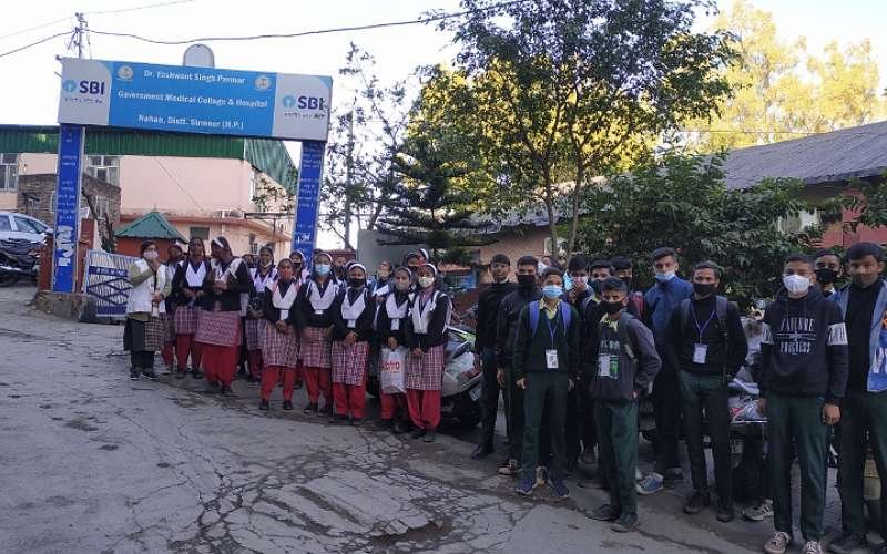 उन्होंने कहा कि मेडिकल कॉलेज के विभिन्न वार्डों के दौरे के दौरान मेडिकल कॉलेज नाहन के वार्ड सिस्टर व विभिन्न वार्ड में ड्यूटी पर तैनात स्टाफ नर्स द्वारा स्कूल के विद्यार्थियों को किस प्रकार स्वास्थ्य के क्षेत्र में रोजगार के अवसर है इस बारे में जानकारी दी गई। साथ ही यह भी बताया कि जमा दो कक्षा के बाद इस क्षेत्र में प्लेसमेंट भी मिलती है।