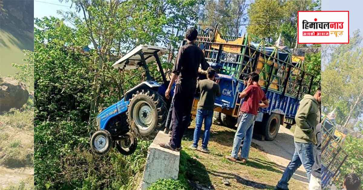 बिलासपुर जिले के घुमारवीं विधानसभा क्षेत्र के घुमारवीं पुल के समीप उतराई से जा रहा पंजाब नंबर (PB 08 EK-2473) वाला ट्रैक्टर अचानक अनियंत्रित हो गया और सड़क किनारे बनी गहरी खाई के मुहाने पर लटक गया। ट्रैक्टर में मेले के लिए झूले लदे हुए थे और इसमें दो लोग सवार थे। जैसे ही ट्रैक्टर लटका, वहां मौजूद लोगों ने तुरंत मदद और बचाव के लिए कार्रवाई शुरू की।