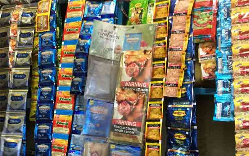 प्रतिबंधित होने के बावजूद भी दुकानों पर धड़ल्ले से बिक रहा तंबाकू-गुटखा