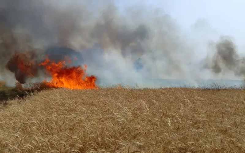 20 एकड़ में कटी हुई गेहूं की फसल जलकर राख