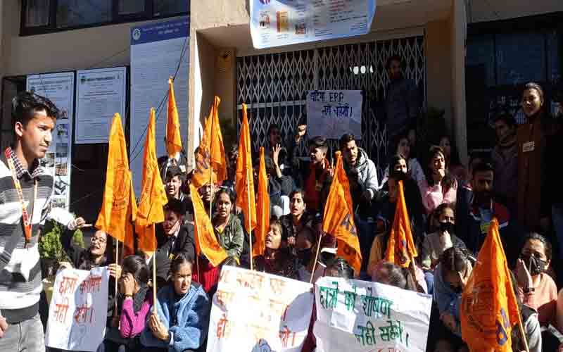 यूजी के परीक्षा परिणामों को लेकर एबीवीपी हुई उग्र, किया धरना प्रदर्शन