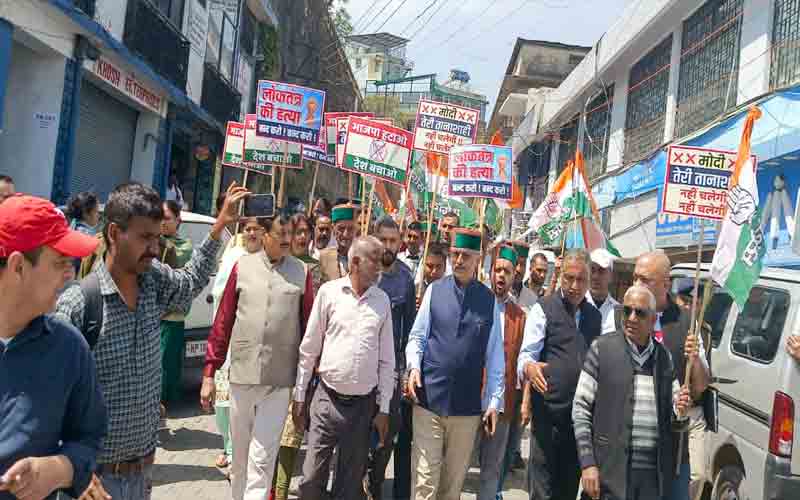 नाहन में कांग्रेस कार्यकर्ताओं ने केंद्र सरकार के खिलाफ की नारेबाजी