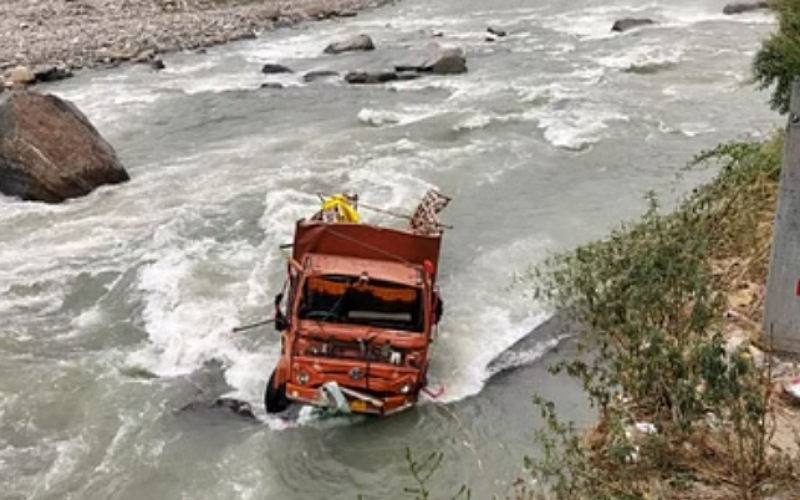 अनियंत्रित होकर ब्यास नदी में गिरा ट्रक, चालक लापता