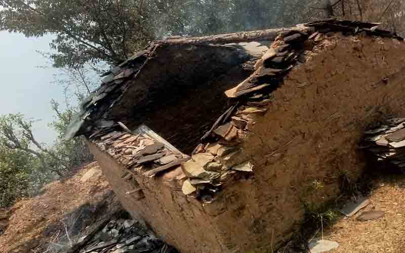 जंगल में लगी आग की चपेट में आने से गोशाला जलकर राख, मवेशी सुरक्षित