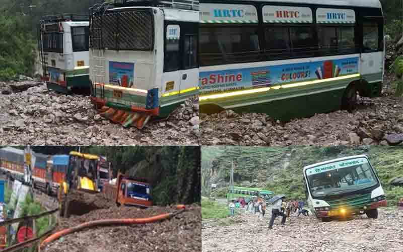 हिमाचल में आफत की बारिश, सड़कों पर मलबा आने से फंसी एचआरटीसी बसें