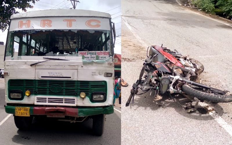 एचआरटीसी बस से टकराई बाइक, 25 वर्षीय चालक जख्मी, अस्पताल में भर्ती