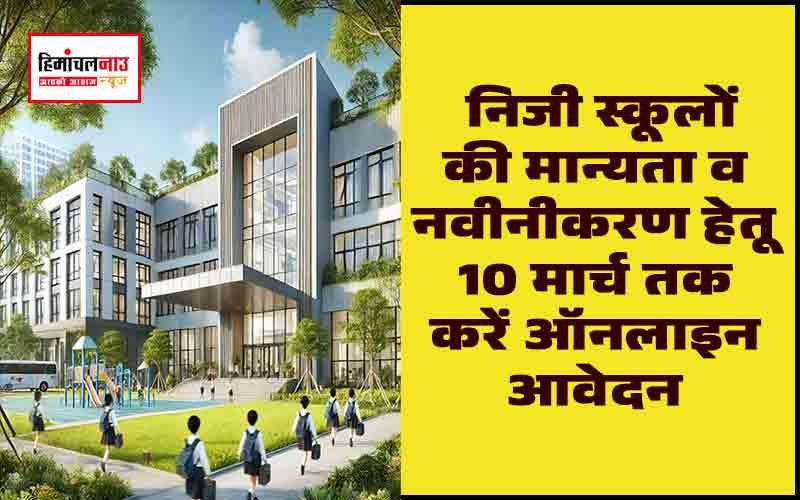 जिला के निजी स्कूलों की मान्यता व नवीनीकरण हेतू 10 मार्च तक करें ऑनलाइन आवेदन February 11, 2025 हिमांचलनाउ डेस्क नाहन